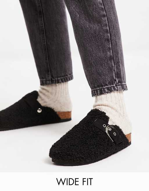 Simply Be Wide Fit - Sorte clogs med imiteret lammeskind