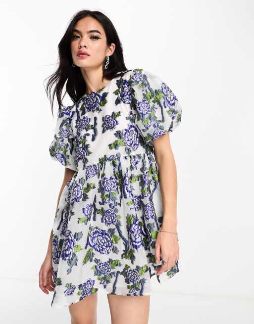 Dream Sister Jane - Oversized minikjole i blå jacquard