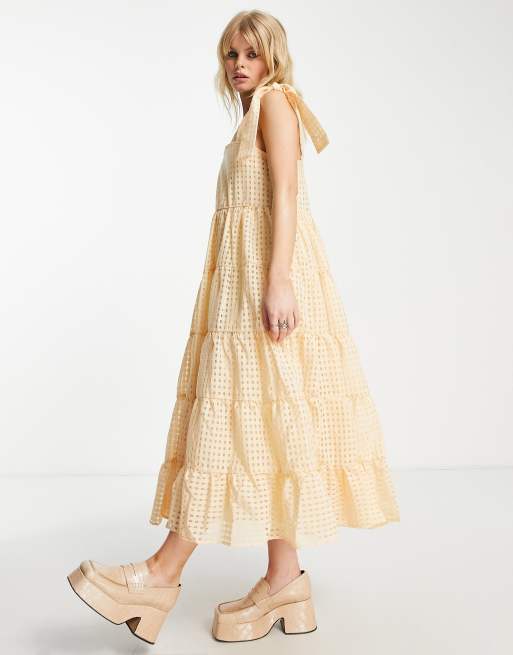Sister Jane - Lagdelt midikjole i gult gingham-tern med bindestropper