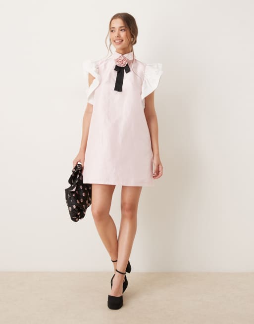 Sister Jane - Lyserød minikjole med rosesløjfe og flæser