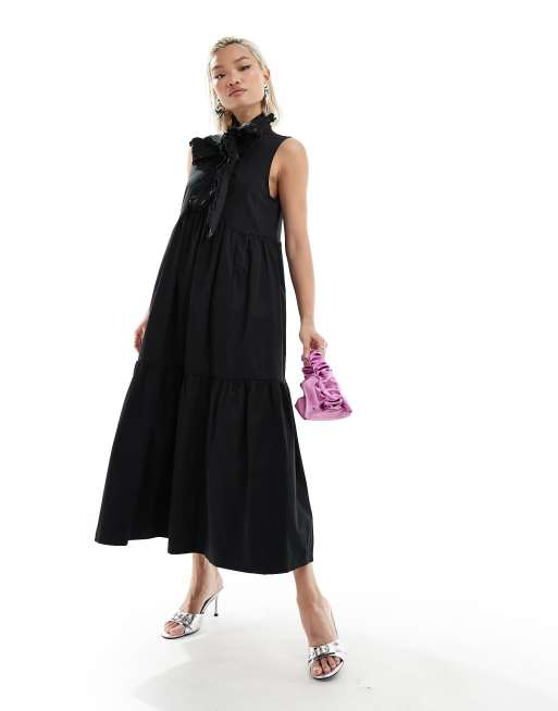 Sister Jane - Peggy - Sort midikjole uden ærmer med sløjfe