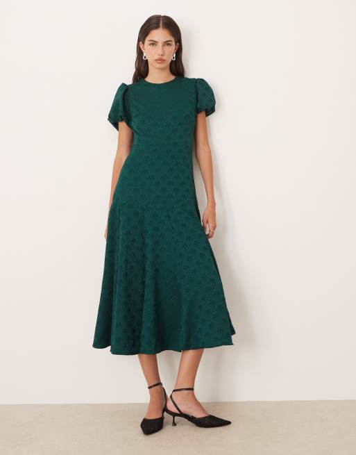 Sister Jane - Smaragdgrøn midikjole i jacquardvævet stof med kileskørt