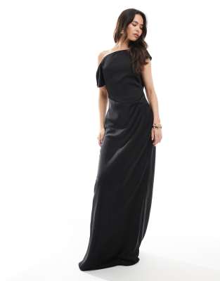 Six Stories - Brudepiger - Sort asymmetrisk maxikjole i satin