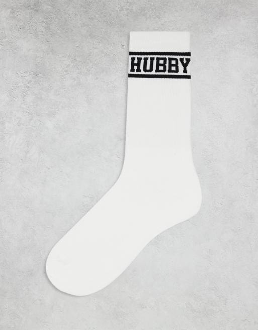Six Stories - Hvide sokker med sort 'Hubby'-print