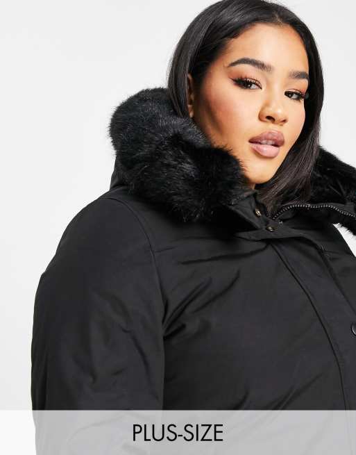 Sixth June Plus - Oversized longline-parka med hætte i imiteret pels
