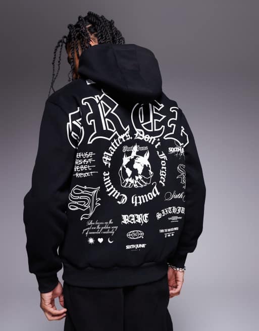 Sixth June - Sort hættetrøje med motivprint på ryggen