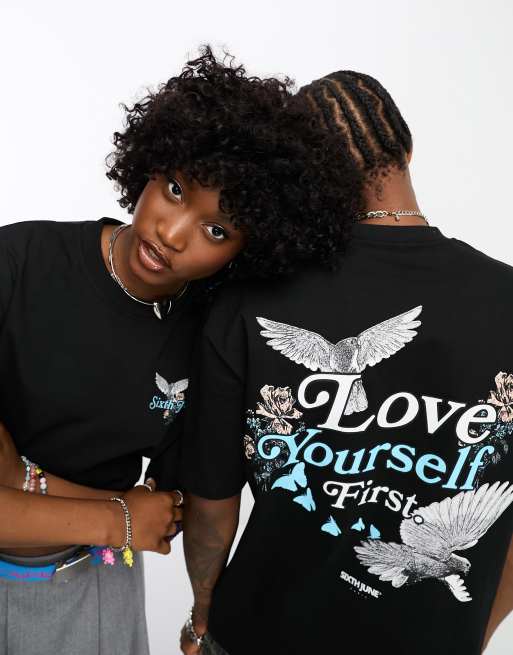 Sixth June - Unisex - Sort T-shirt med 'Love Yourself'-print