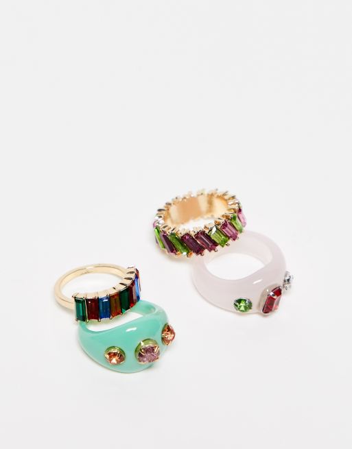Skinnydip - Pakke med 4 multifarvede ringe med kunststen