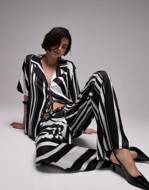 SNDYS - Monokrom og stribet skjorte med korte ærmer og krave samt bindebånd foran - Del af sæt
