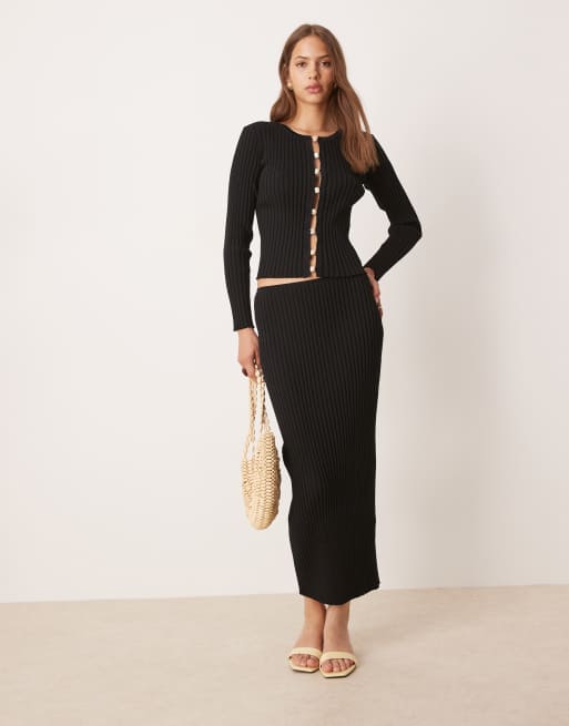 SNDYS - Sort ribstrikket maxinederdel med søjlesnit - Del af sæt