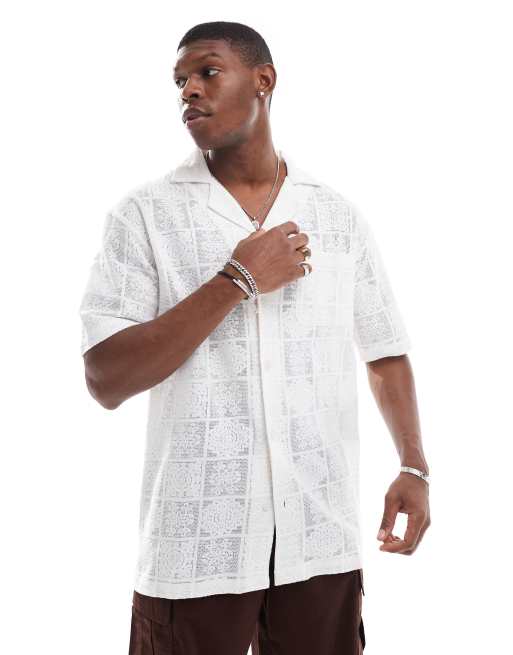 Sol Beach - Cremehvid hæklet strandskjorte med korte ærmer