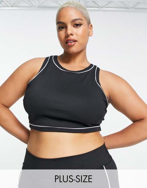 South Beach Plus - Sort croptop med racerfront og kontrastkanter i polyester