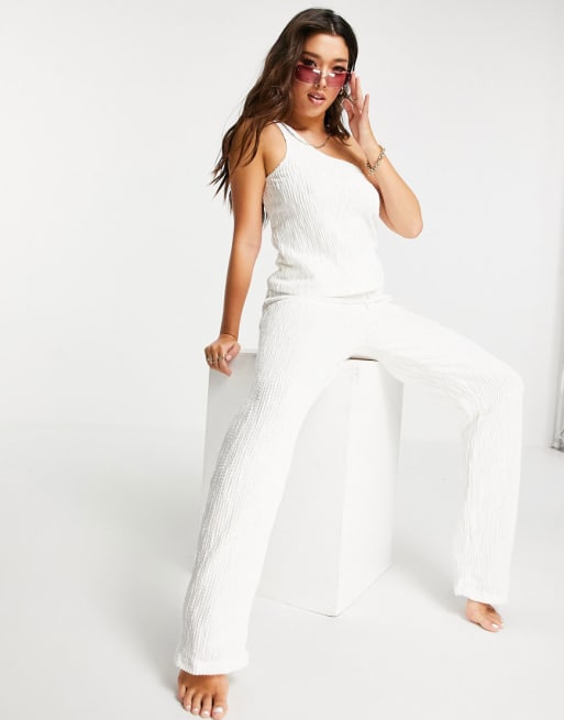 South Beach - Afslappet sæt med bukser & oneshoulder-striktop med tekstur