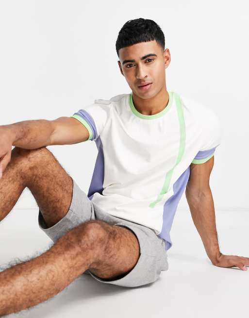 South Beach - Cremehvid T-shirt med paneler i polyester