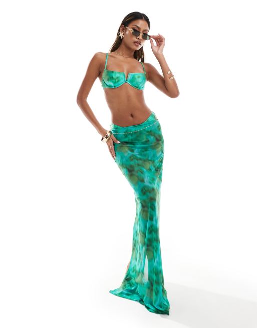South Beach - Grøn maxi-strandnederdel med abstrakt print i mesh
