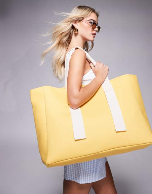 South Beach - Gul stor tote-taske med kontrasterende stropper i kanvas