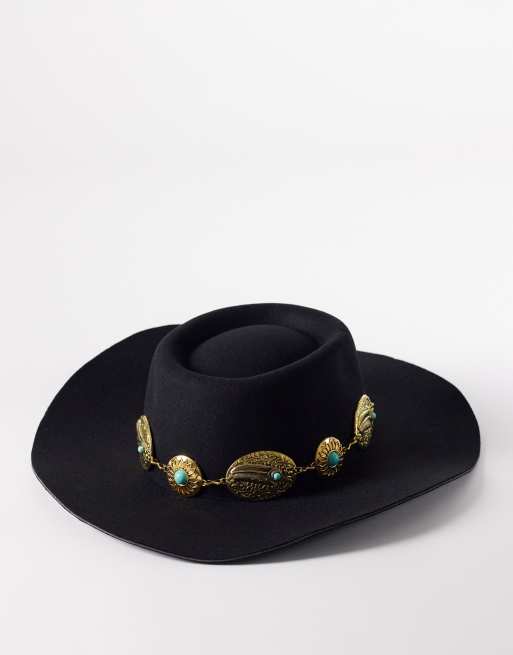South Beach - Sort cowboyhat med westerndetalje