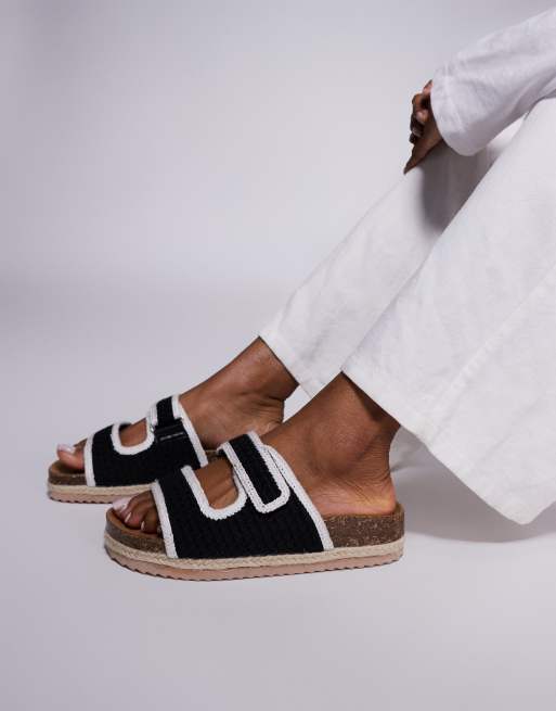 South Beach - Sorte hæklede espadrille-sandaler med dobbeltrem