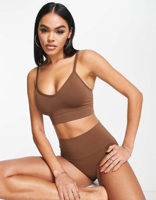Spanx - Seamless - Brun longline-bralette med cami-stropper og formgivende effekt