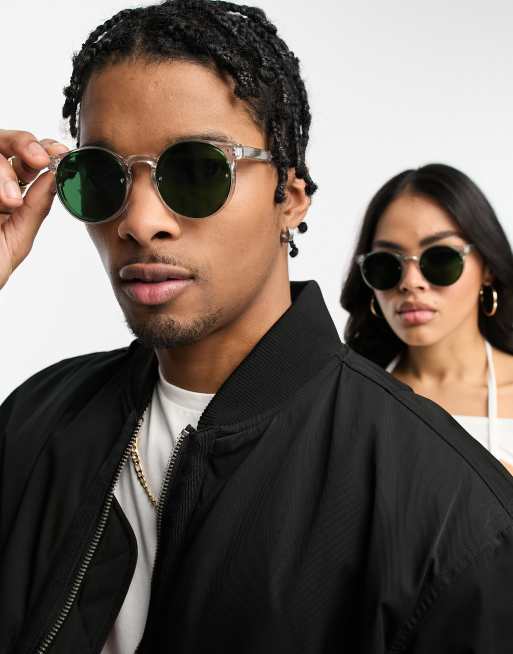 Spitfire - Post Punk - Gennemsigtige runde solbriller med grønt glas
