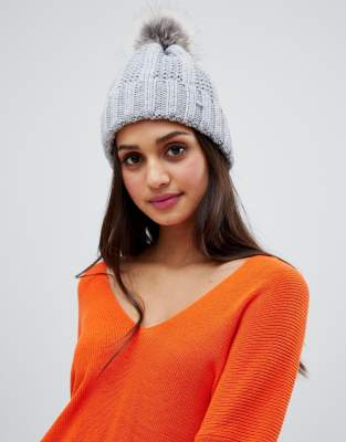 Grå hue med pompom fra Stitch & Pieces