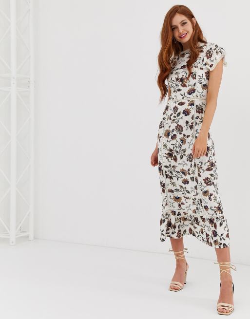 Hvid blomstret midikjole fra Stradivarius