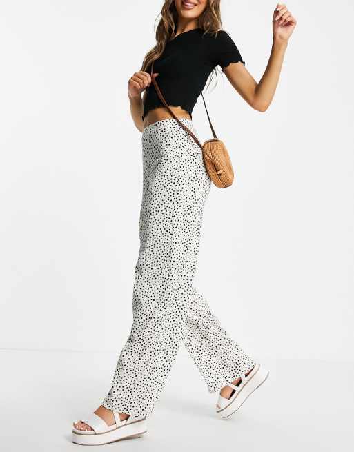 Stradivarius - Afslappede bukser i hvide polkaprikker med ben med vidde