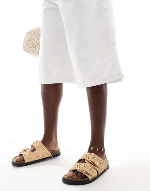 Stradivarius - Beige flatform-sandaler med dobbeltspænde