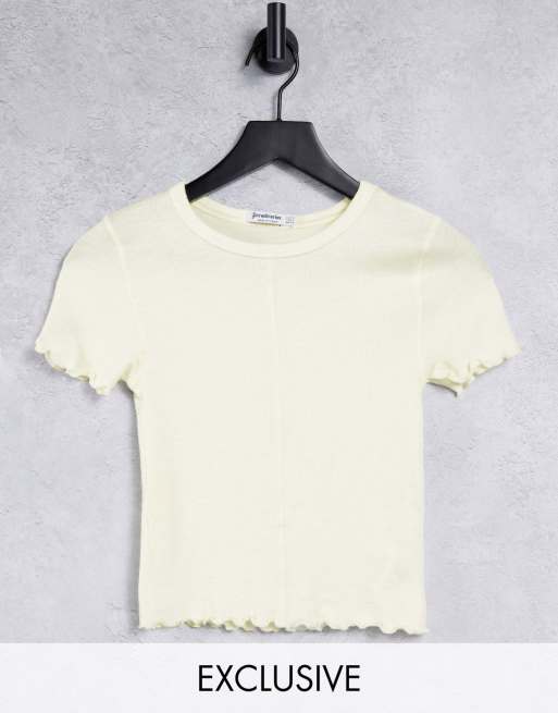 Stradivarius - Beige T-shirt med sømdetaljer foran i polyester
