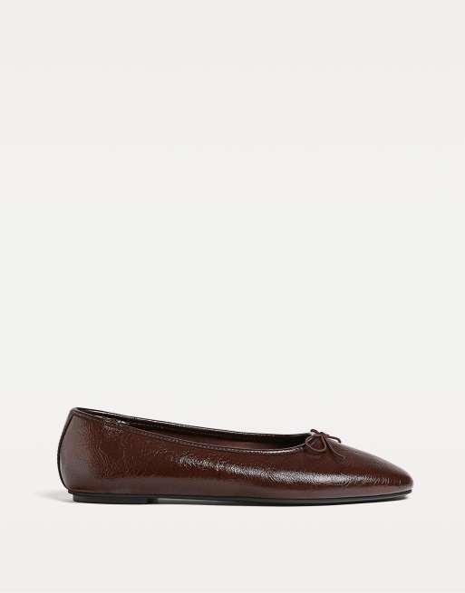 Stradivarius - Bordeaux ballerinaer med imiteret lak-finish