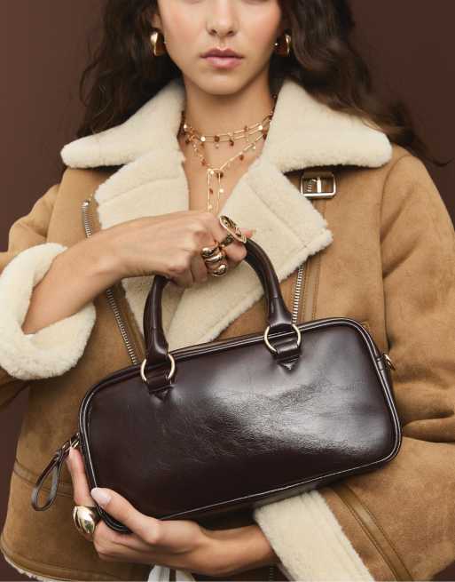 Stradivarius - Brun bowling-taske i imiteret læder med crossbody-strop