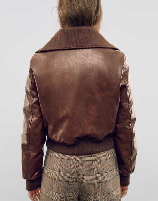 Stradivarius - Brun kort jakke med lommer og lædereffekt