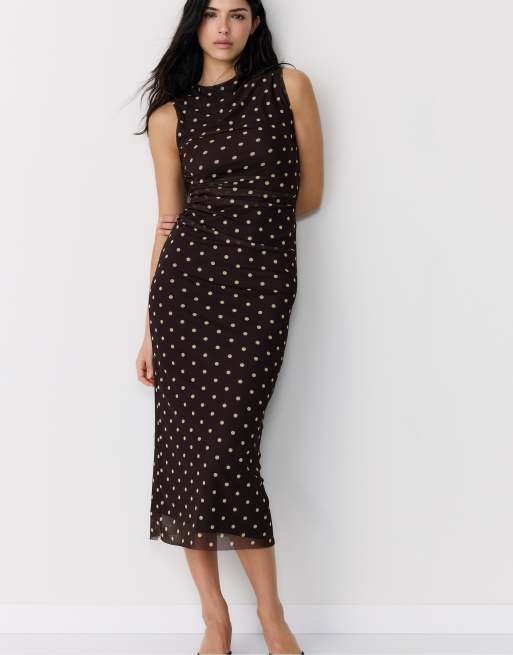 Stradivarius - Brun midikjole uden ærmer i tyl