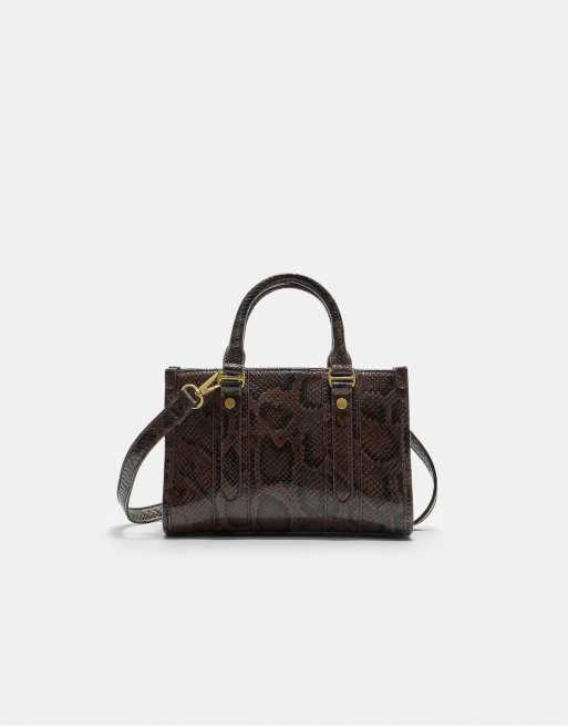 Stradivarius - Brun totebag med lædereffekt og dyreprint