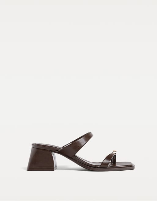 Stradivarius - Brune sandaler med høje hæle og metaldetalje