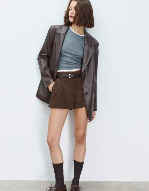 Stradivarius - Brune, tætsiddende og elegante mini-shorts med bælte