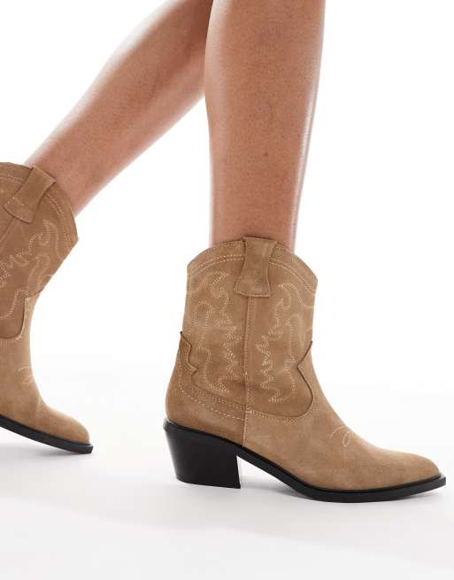 Stradivarius - Brune western-ankelstøvler med hæl i ruskind