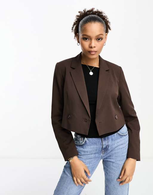 Stradivarius - Cropped blazer i brun