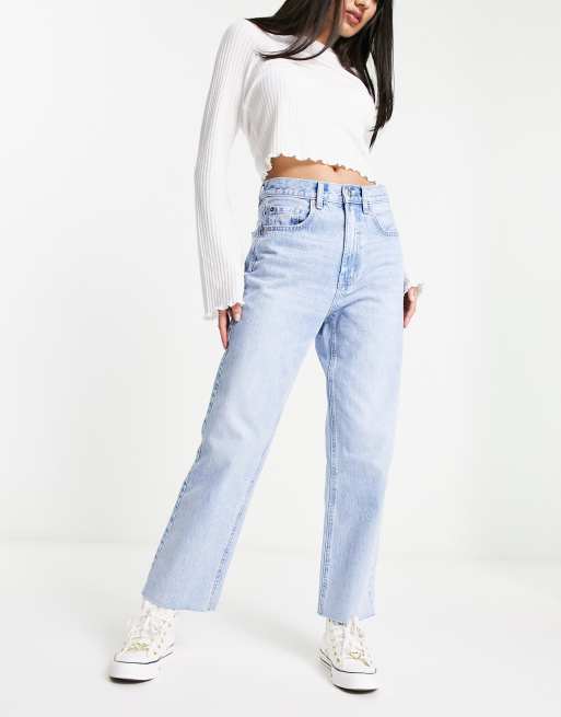 Stradivarius - Cropped jeans med lige ben i lyseblå