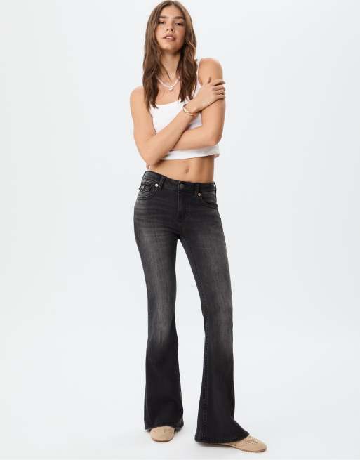 Stradivarius - D04 - Vasket sorte jeans med svaj og lav talje