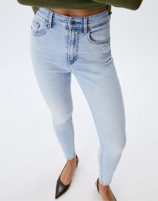 Stradivarius - D09 - Skinny-jeans med ekstra høj talje i mellemblå overdye