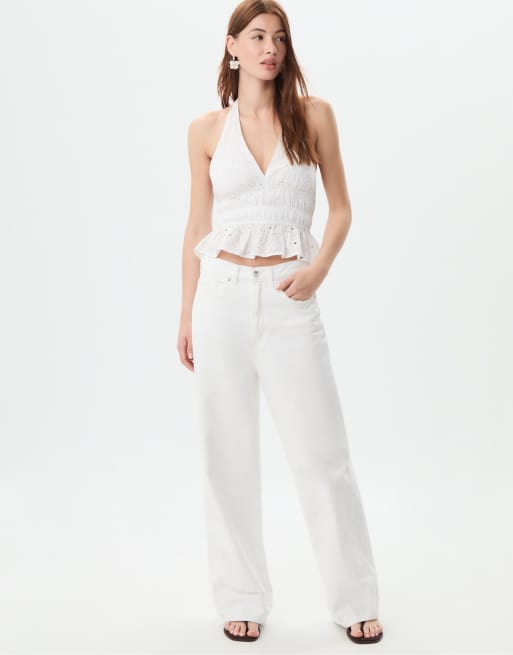Stradivarius - D88 - Ecrufarvet baggy jeans med brede ben