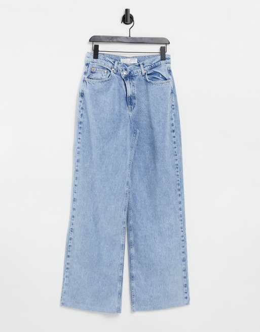 Stradivarius - Dad-jeans med asymetrisk taljebånd i vasket blå