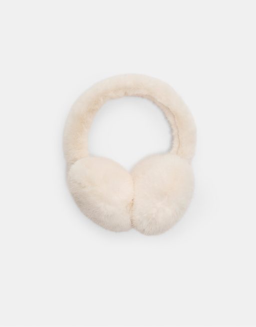 Stradivarius - Ecru ørevarmere i imiteret pels