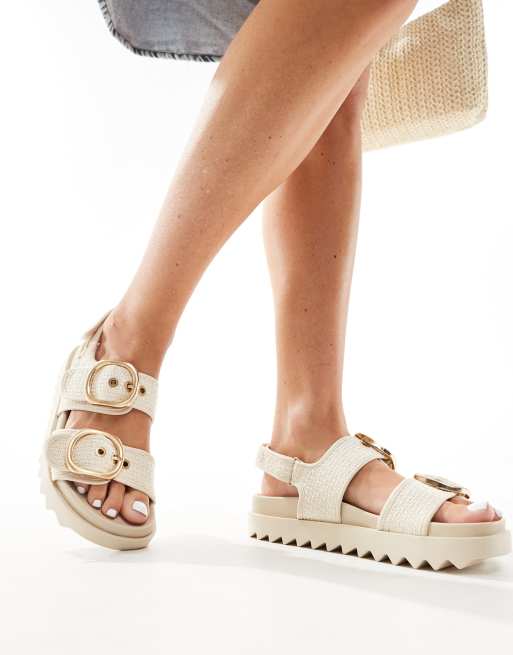 Stradivarius - Ecrufarvede sandaler i tweed med spænder