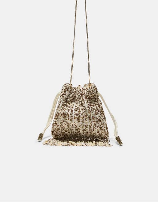 Stradivarius - Ecrufarvet crossbody-taske med perler
