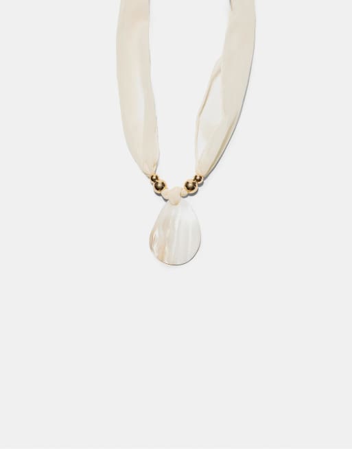 Stradivarius - Ecrufarvet vævet halskæde med perlemorseffekt