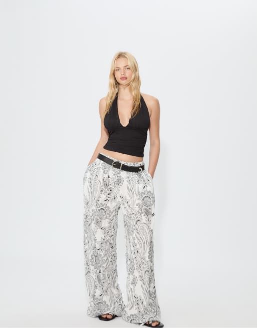 Stradivarius - Flagrende hvide palazzo-bukser med print