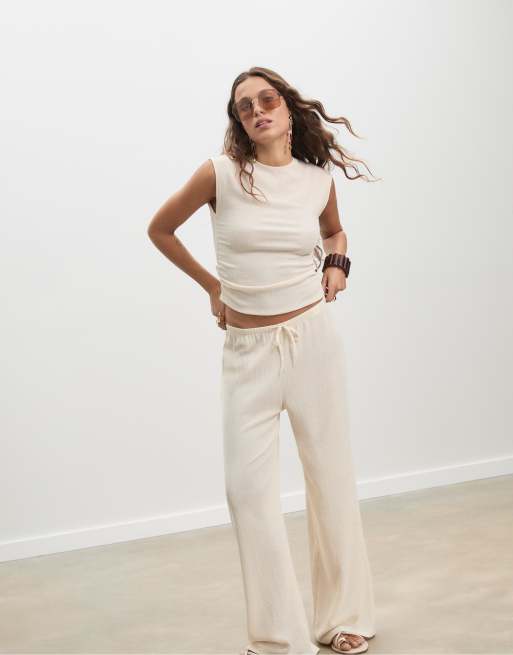 Stradivarius - Flagrende og råhvide bukser med krøllet look