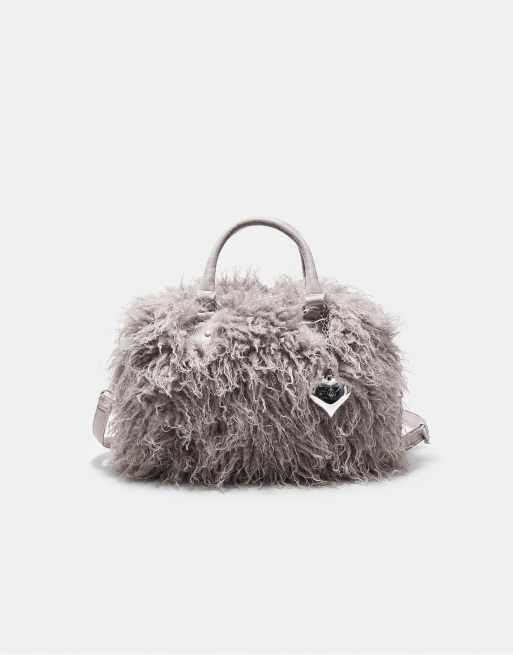 Stradivarius - Grå bowlingtaske i imiteret pels med hjertedetalje